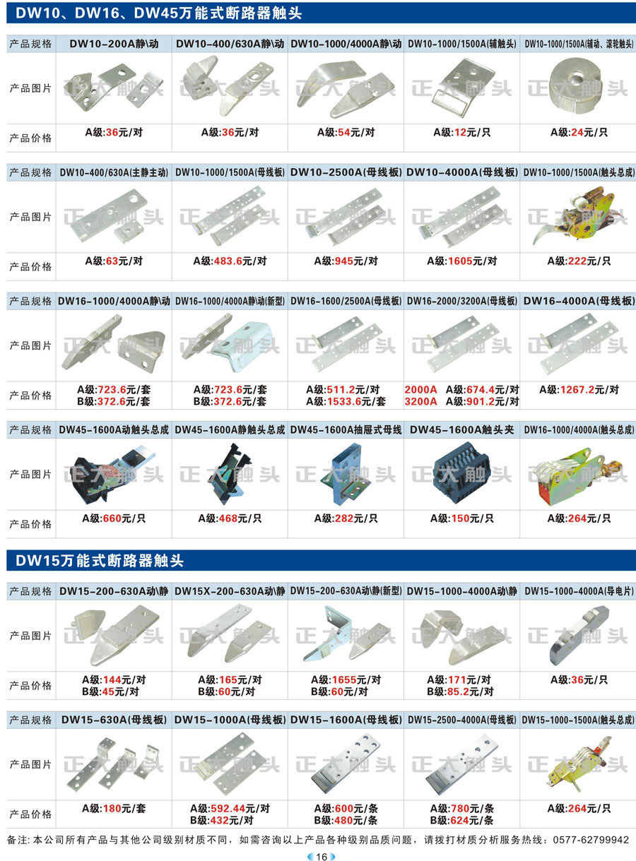 DW10、DW16、DW45、DW15萬(wàn)能式斷路器觸頭