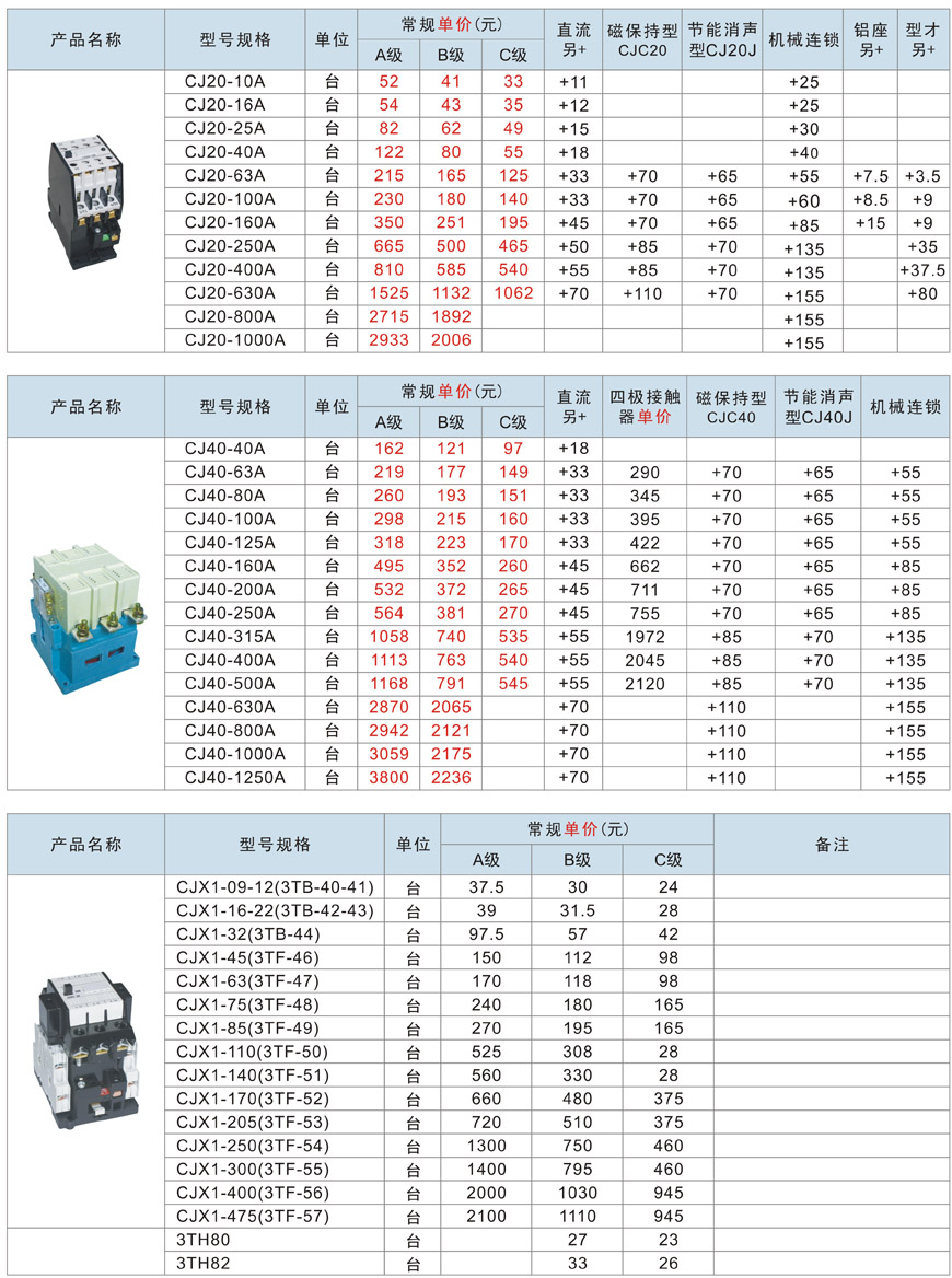 CJ20、CJ40、CJX1交流接觸器