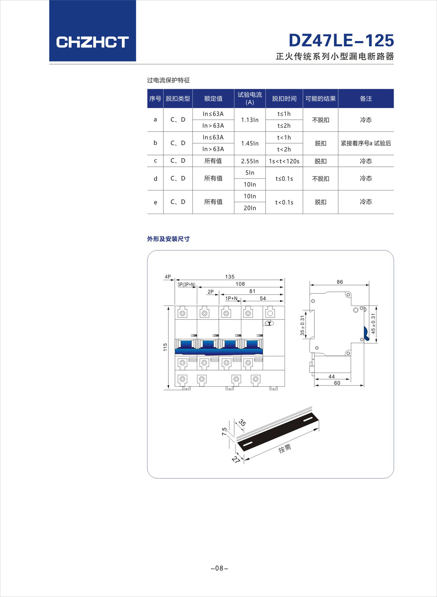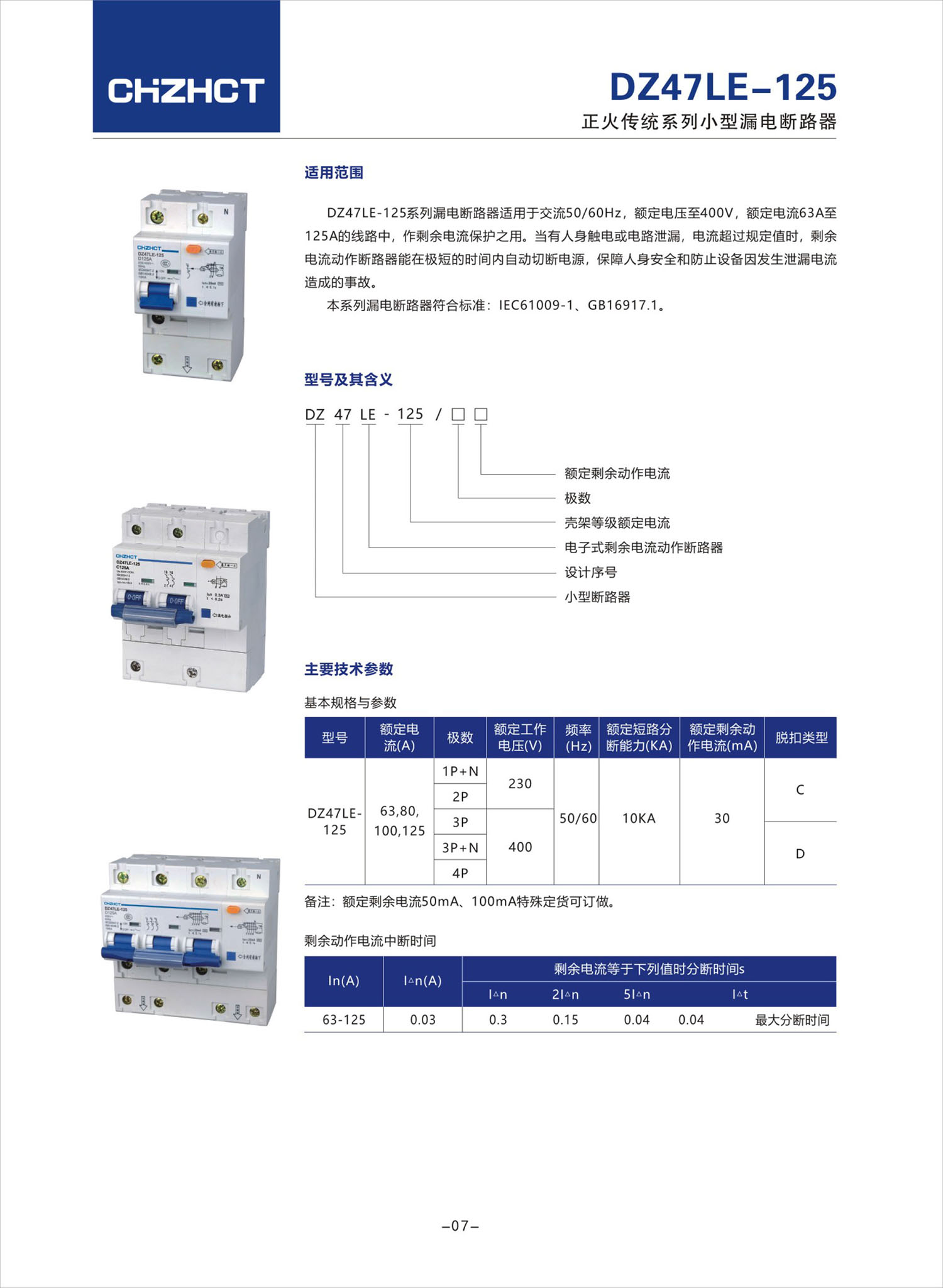 DZ47LE-125小型漏電斷路器產(chǎn)品說明書