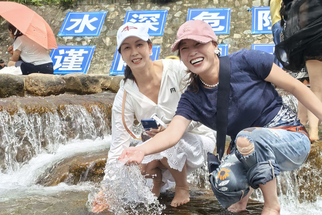 當(dāng)天上午10時(shí),活動(dòng)一行人準(zhǔn)時(shí)抵達(dá)綠意環(huán)繞的仙溪鎮(zhèn)橫溪頭。清澈溪流與層疊的鵝卵石壩構(gòu)成天然畫卷:大家紛紛赤腳踏浪,感受溪水清涼;部分組員還暢游一番,展現(xiàn)矯健身姿;秘書處全程用鏡頭記錄下了團(tuán)隊(duì)歡笑瞬間。水花飛濺中,每個(gè)人臉上洋溢著愉快的微笑,盡顯青春朝氣。