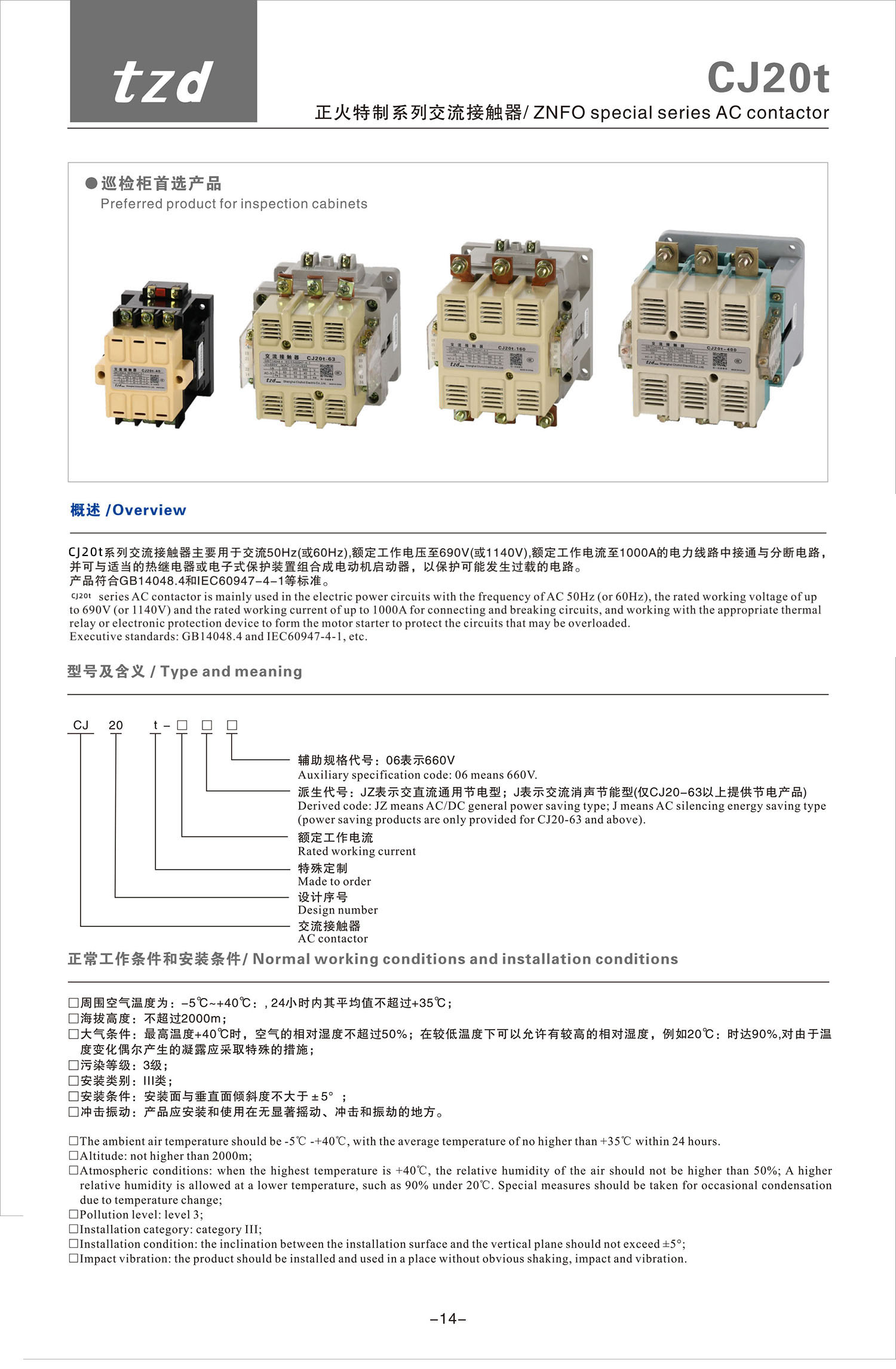 CJ20t 正火特制系列交流接觸器產(chǎn)品說明書