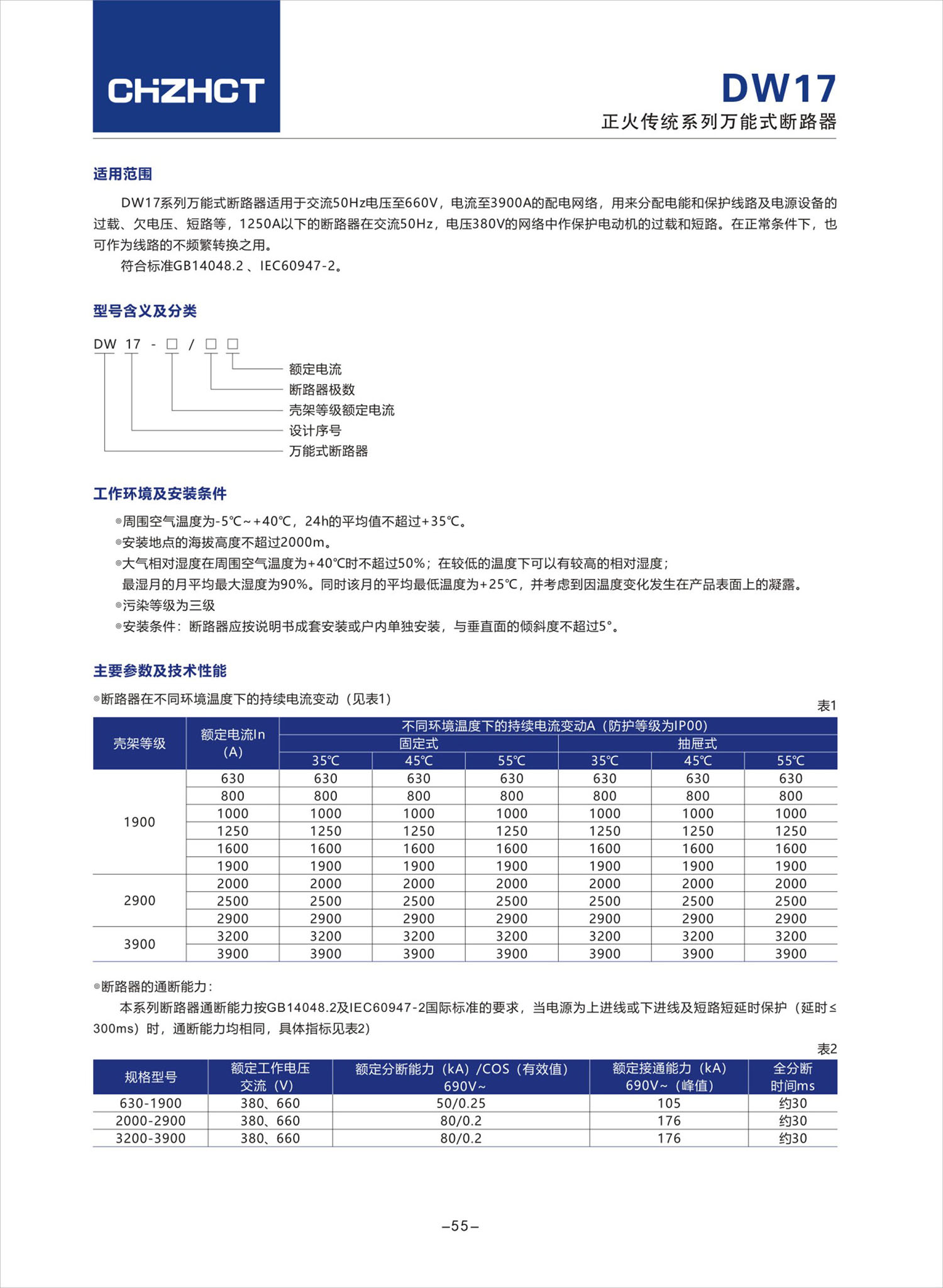 DW17 系列萬能式斷路器
