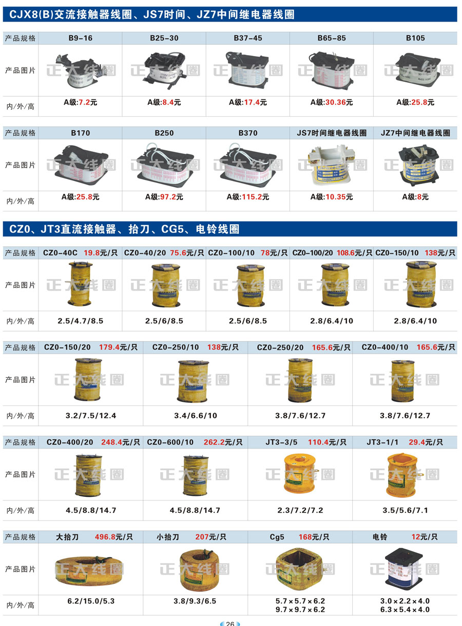CJX1(3TB、3TF)、CJX2(LC1)交流接觸器線圈、CJX2(LC1)、CJ24交流接觸器線圈