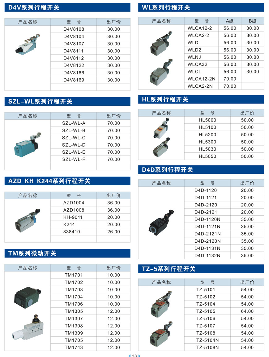 D4V、SZL-WL、AZD KH K244、TM微動(dòng)、WL、HL、D4D、TZ-5系列行程開關(guān)