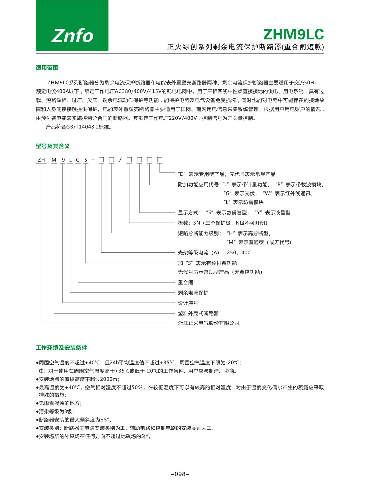 ZHM9LC系列剩余電流保護斷路器(重合閘短款)產(chǎn)品說明書